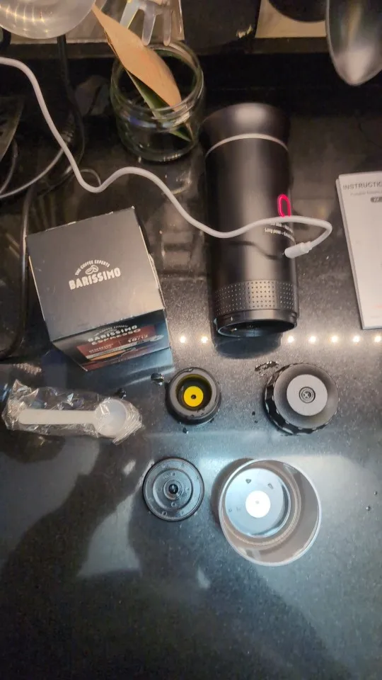 Portable espresso machine can be charged on the go, portable charging, equipped with Type-C USB cable charging methods, support charging while using, suitable for travelling, camping, driving, home and office.